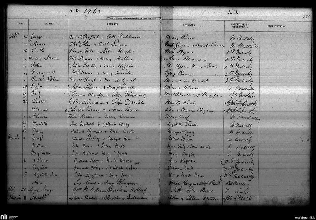 Haddington Road; County of Dublin; Archdiocese of Dublin. Baptisms, Feb. 1863 to Mar. 1863