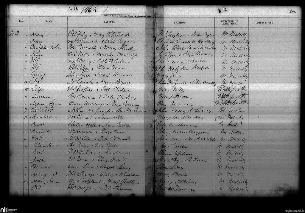 Haddington Road; County of Dublin; Archdiocese of Dublin. Baptisms, Jan. 1864