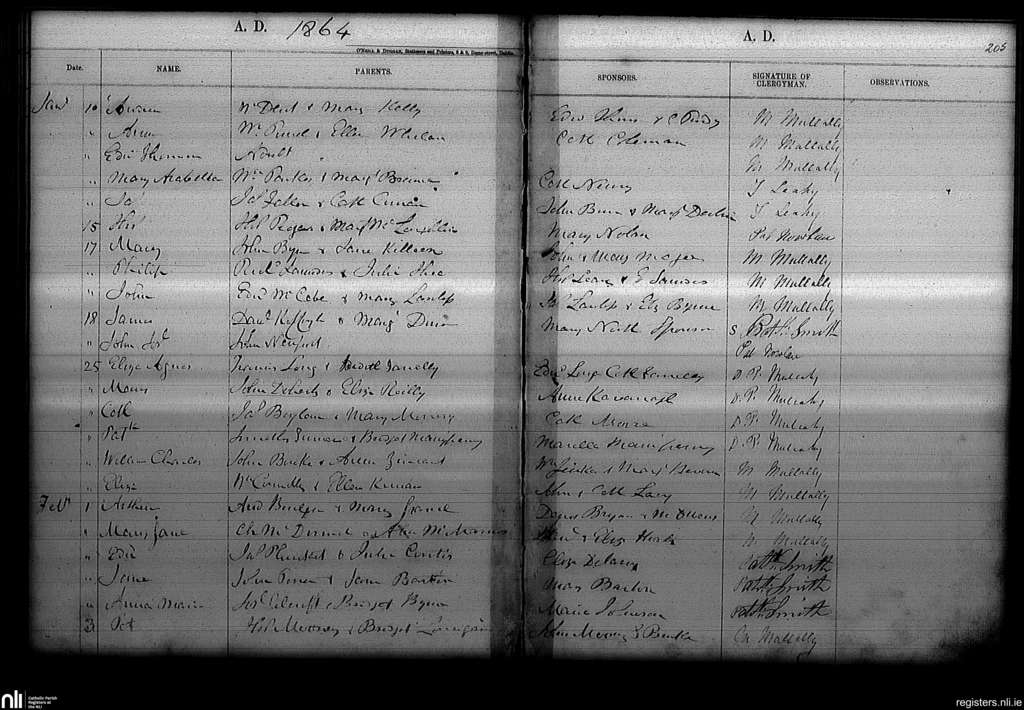 Haddington Road; County of Dublin; Archdiocese of Dublin. Baptisms, Jan. 1864 to Feb. 1864