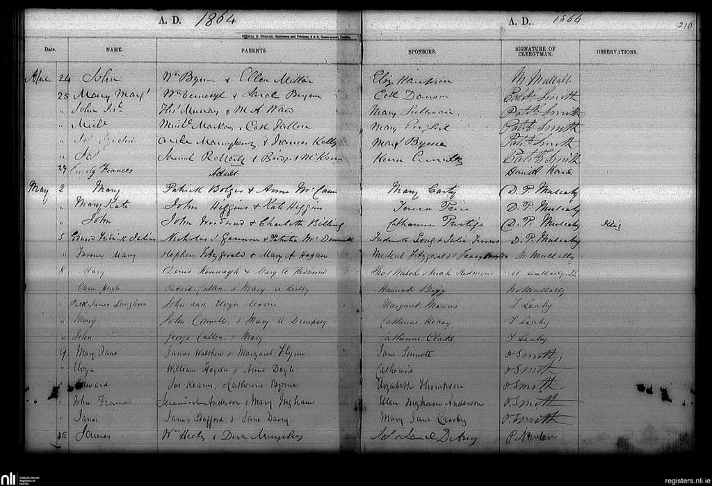 Haddington Road; County of Dublin; Archdiocese of Dublin. Baptisms, Apr. 1864 to May 1864