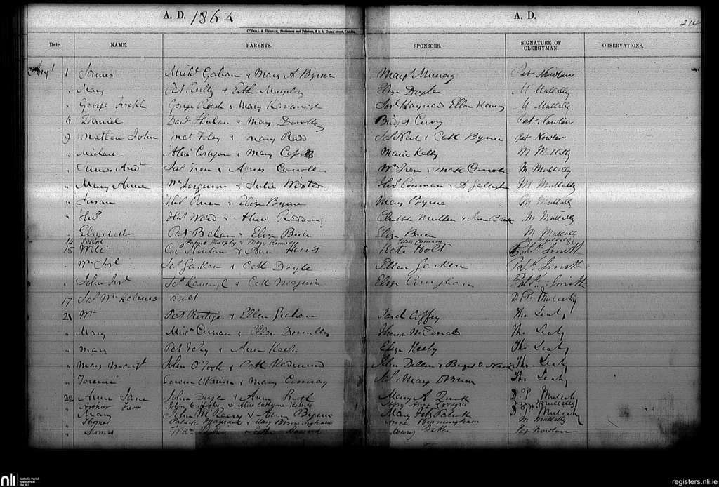 Haddington Road; County of Dublin; Archdiocese of Dublin. Baptisms, Aug. 1864