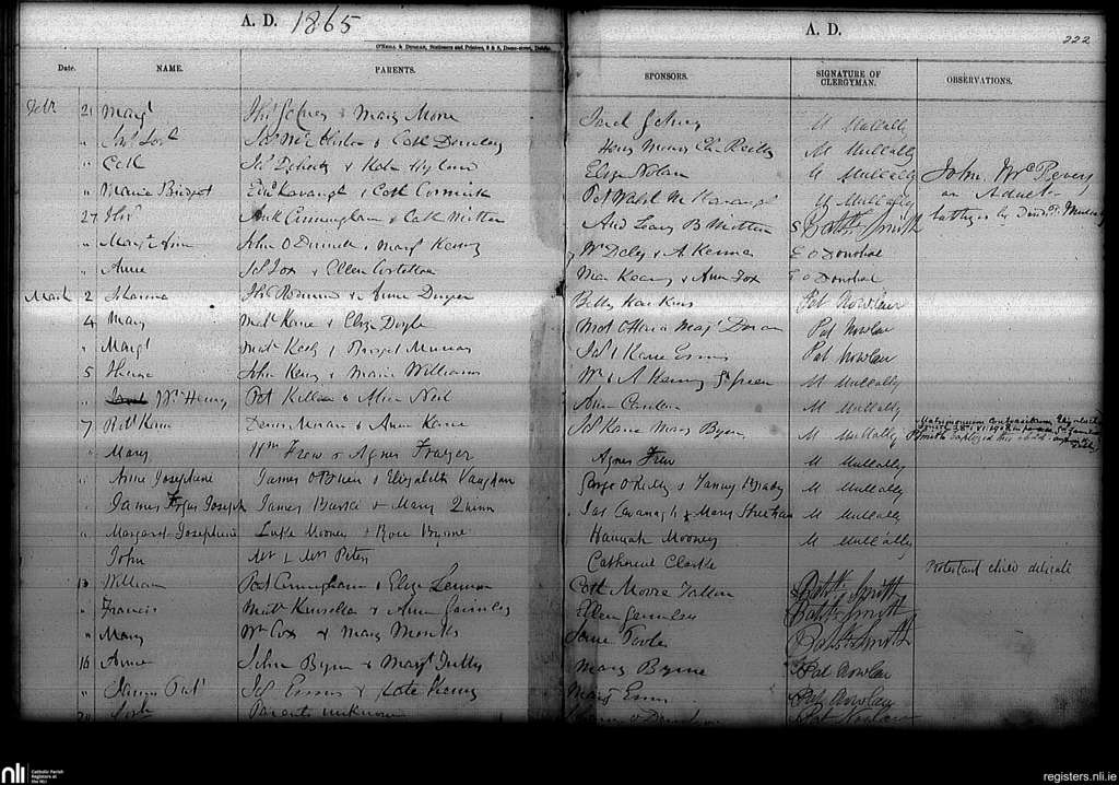 Haddington Road; County of Dublin; Archdiocese of Dublin. Baptisms, Feb. 1865 to Mar. 1865
