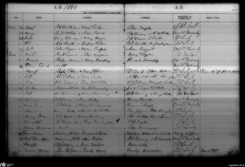 Haddington Road; County of Dublin; Archdiocese of Dublin. Baptisms, May 1865 to June 1865