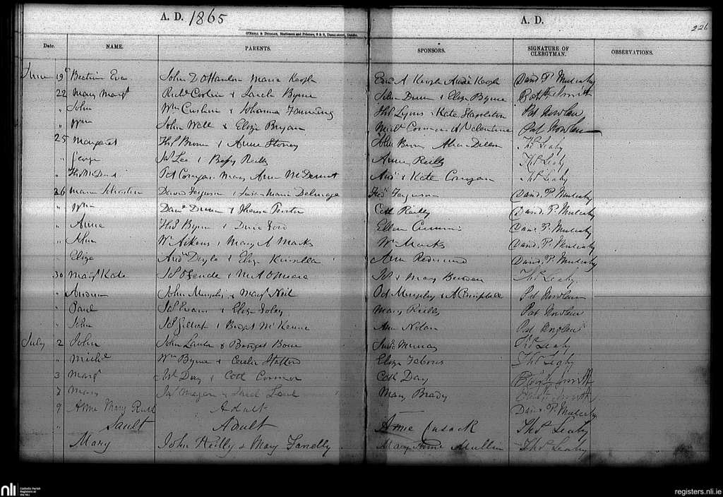 Haddington Road; County of Dublin; Archdiocese of Dublin. Baptisms, June 1865 to July 1865