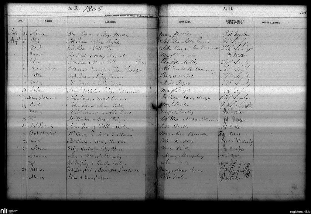 Haddington Road; County of Dublin; Archdiocese of Dublin. Baptisms, July 1865 to Aug. 1865