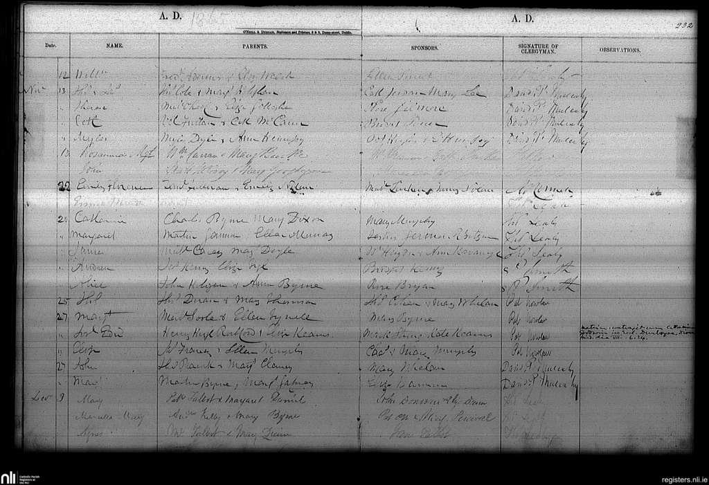 Haddington Road; County of Dublin; Archdiocese of Dublin. Baptisms, Nov. 1865 to Dec. 1865