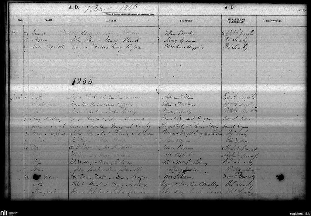 Haddington Road; County of Dublin; Archdiocese of Dublin. Baptisms, Dec. 1865 to Jan. 1866