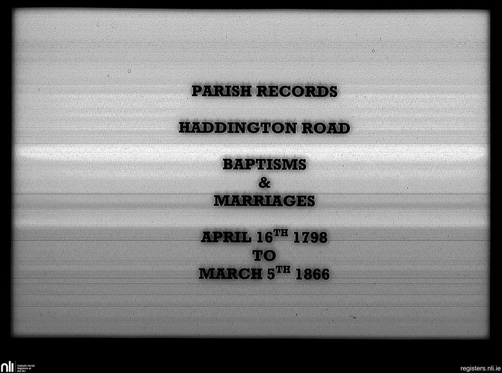 Haddington Road; County of Dublin; Archdiocese of Dublin. Baptisms, Marriages