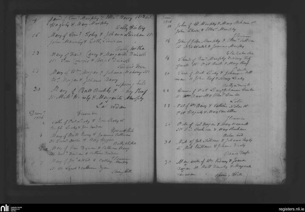 Glanmire; County of Cork; Diocese of Cork and Ross. Baptisms, Nov. 1806 to Dec. 1806