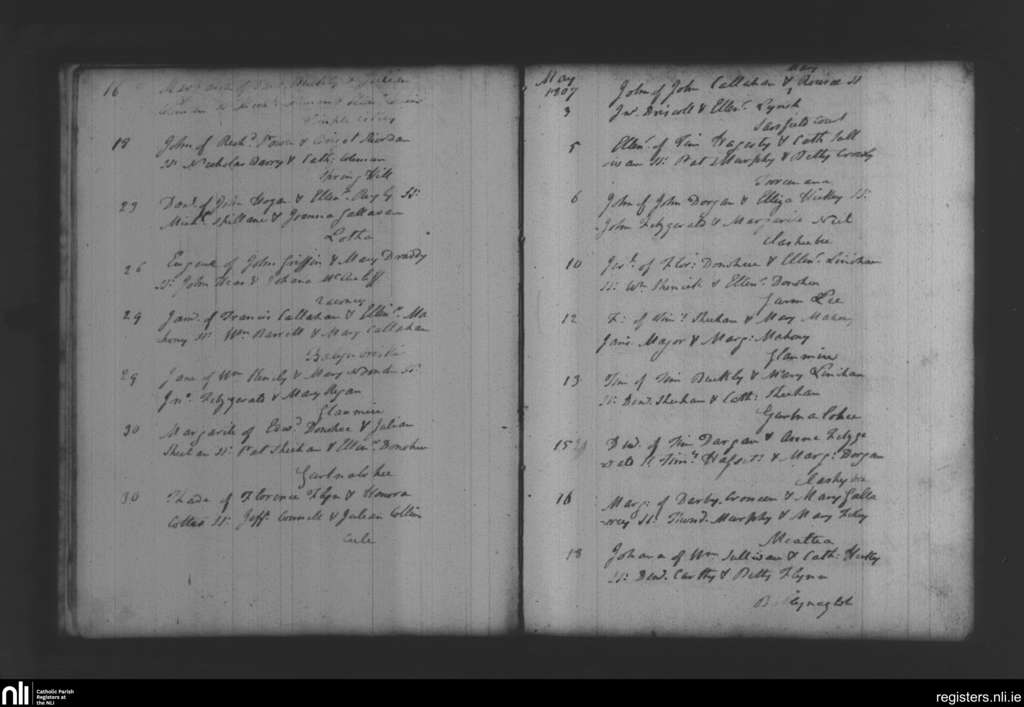 Glanmire; County of Cork; Diocese of Cork and Ross. Baptisms, Apr. 1807 to May 1807