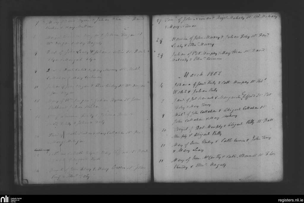 Glanmire; County of Cork; Diocese of Cork and Ross. Baptisms, Feb. 1808 to Mar. 1808