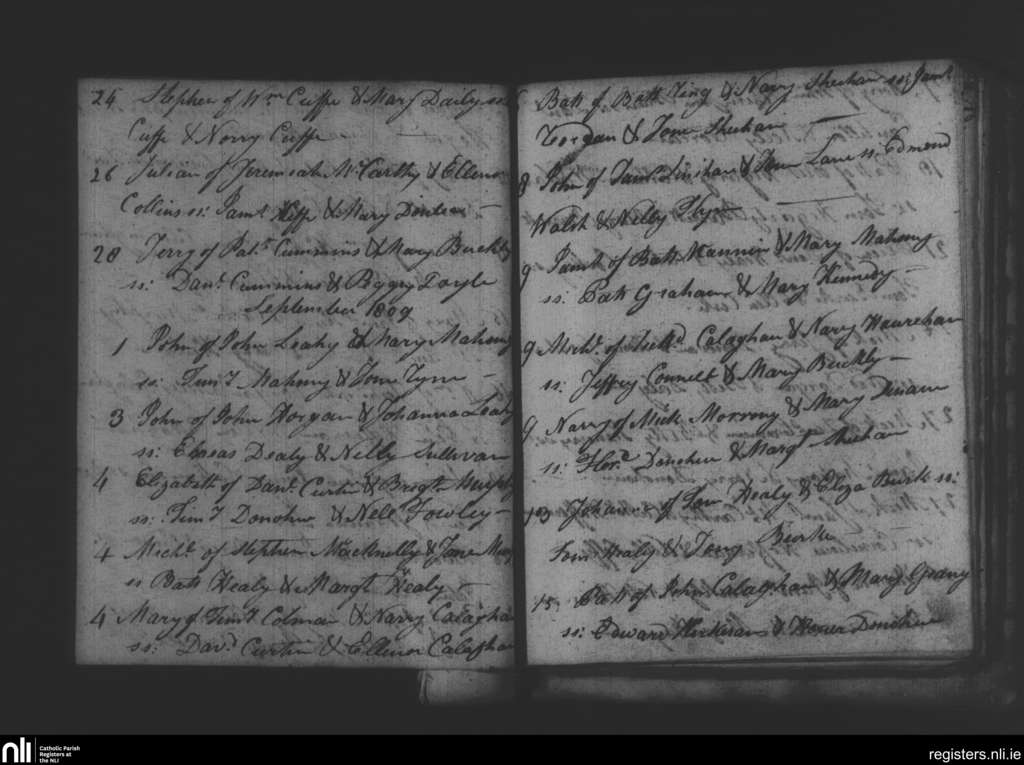 Glanmire; County of Cork; Diocese of Cork and Ross. Baptisms, Aug. 1809 to Sep. 1809