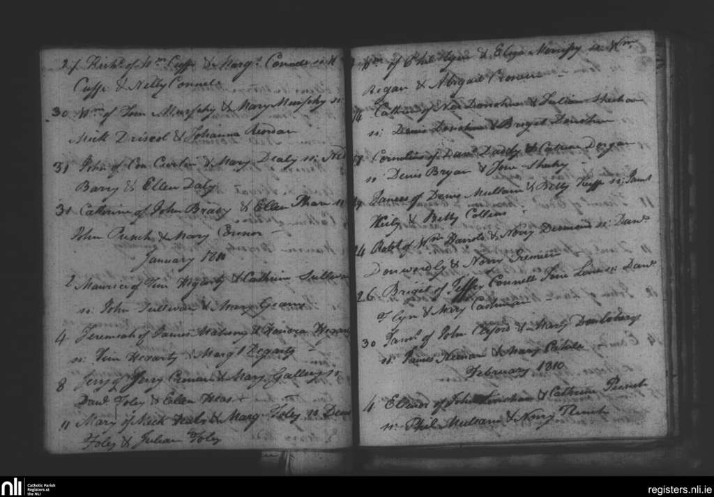 Glanmire; County of Cork; Diocese of Cork and Ross. Baptisms, Dec. 1809 to Feb. 1810