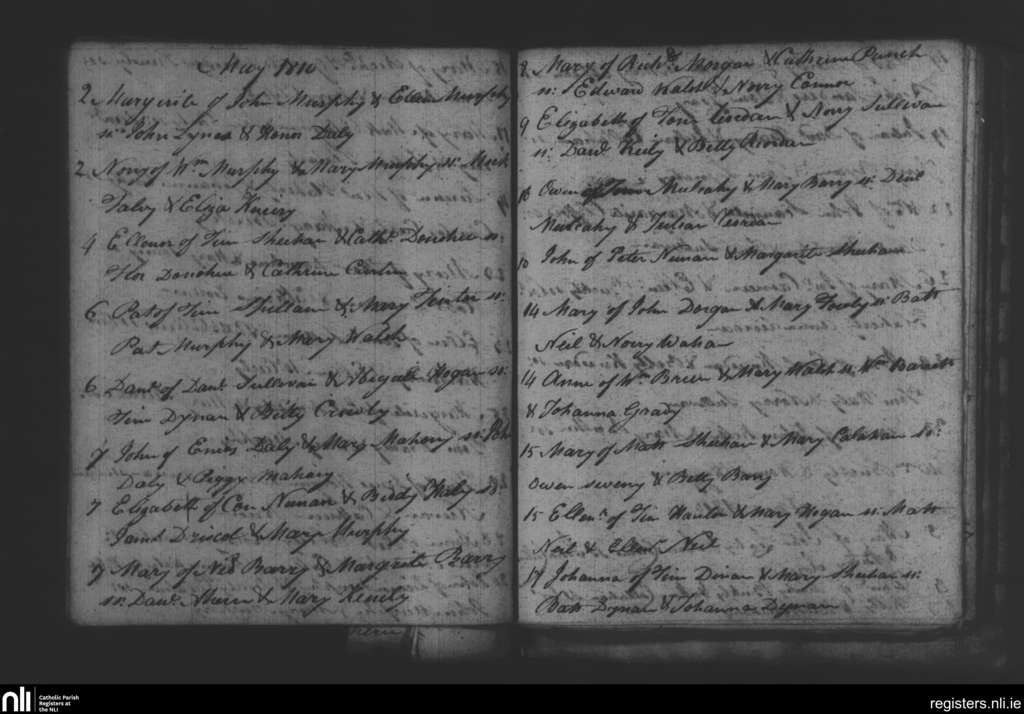 Glanmire; County of Cork; Diocese of Cork and Ross. Baptisms, May 1810