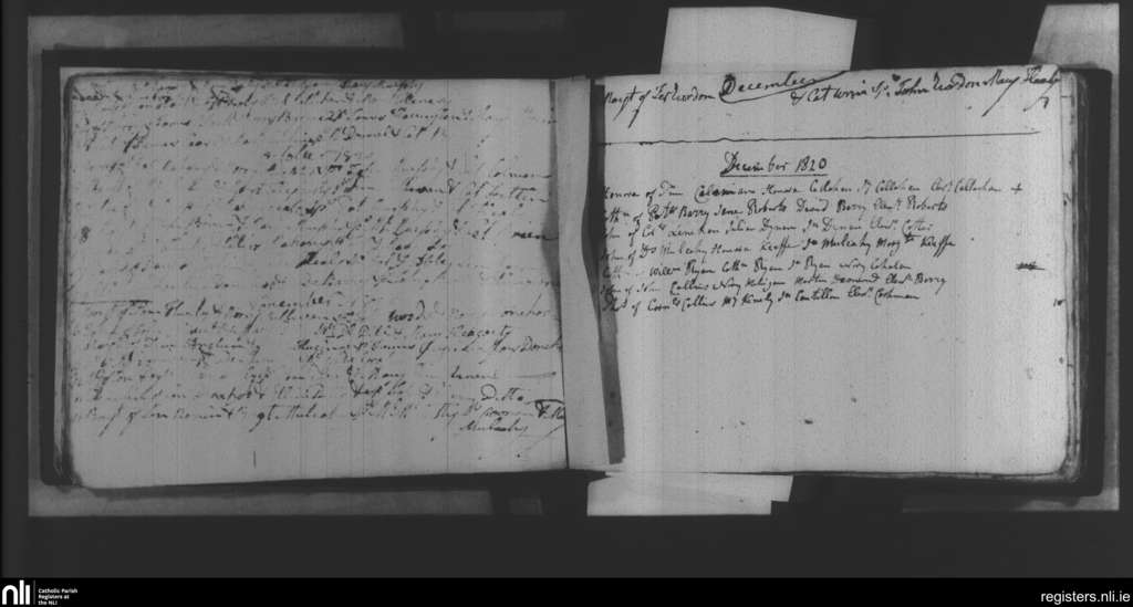 Glanmire; County of Cork; Diocese of Cork and Ross. Baptisms, Sep. 1820 to Dec. 1820