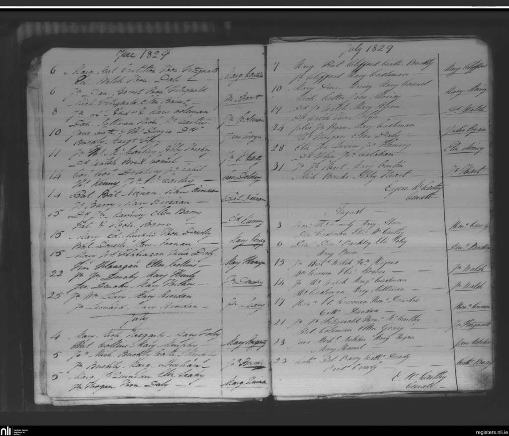Glanmire; County of Cork; Diocese of Cork and Ross. Baptisms, June 1829 to Aug. 1829