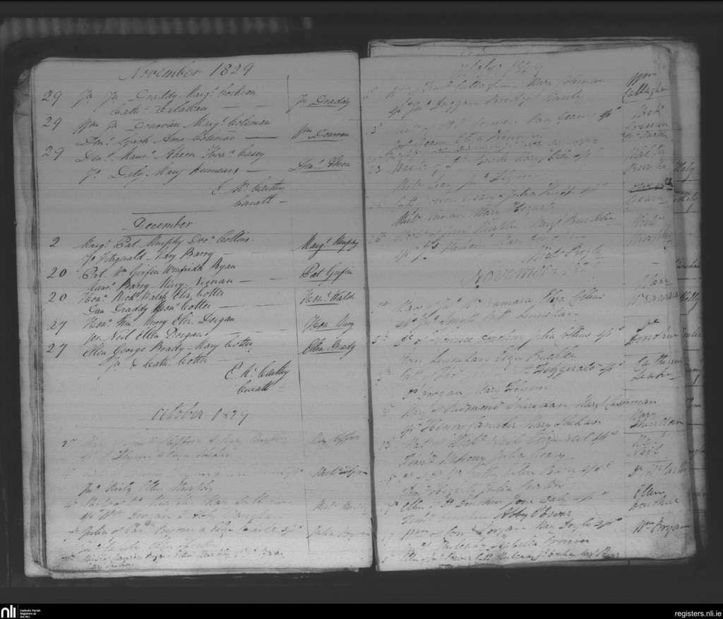 Glanmire; County of Cork; Diocese of Cork and Ross. Baptisms, Oct. 1829 to Dec. 1829