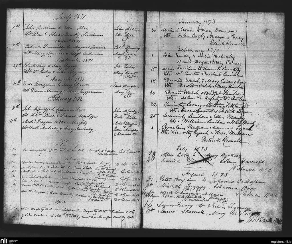 Glanmire; County of Cork; Diocese of Cork and Ross. Marriages, Jan. 1871 to Nov. 1873