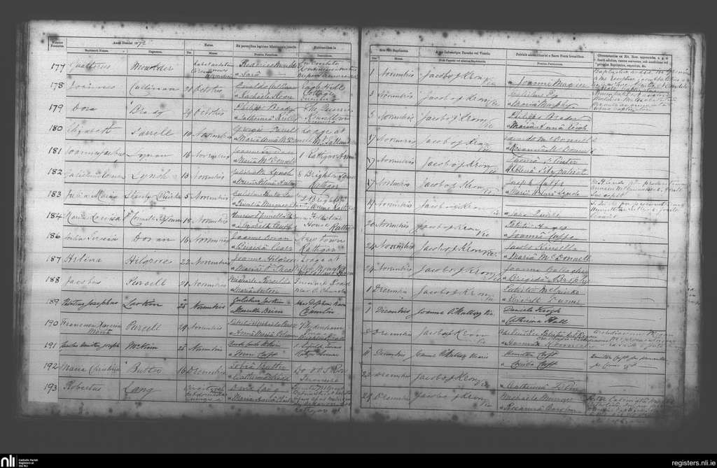 Terenure; County of Dublin; Archdiocese of Dublin. Baptisms, Nov. 1872 to Dec. 1872