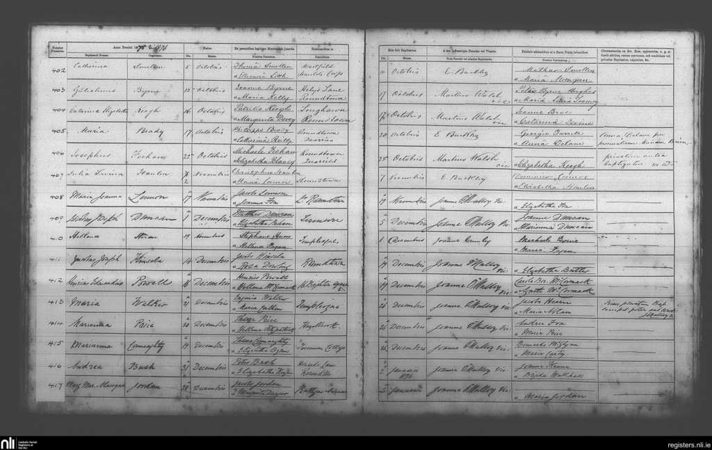 Terenure; County of Dublin; Archdiocese of Dublin. Baptisms, Oct. 1875 to Jan. 1876