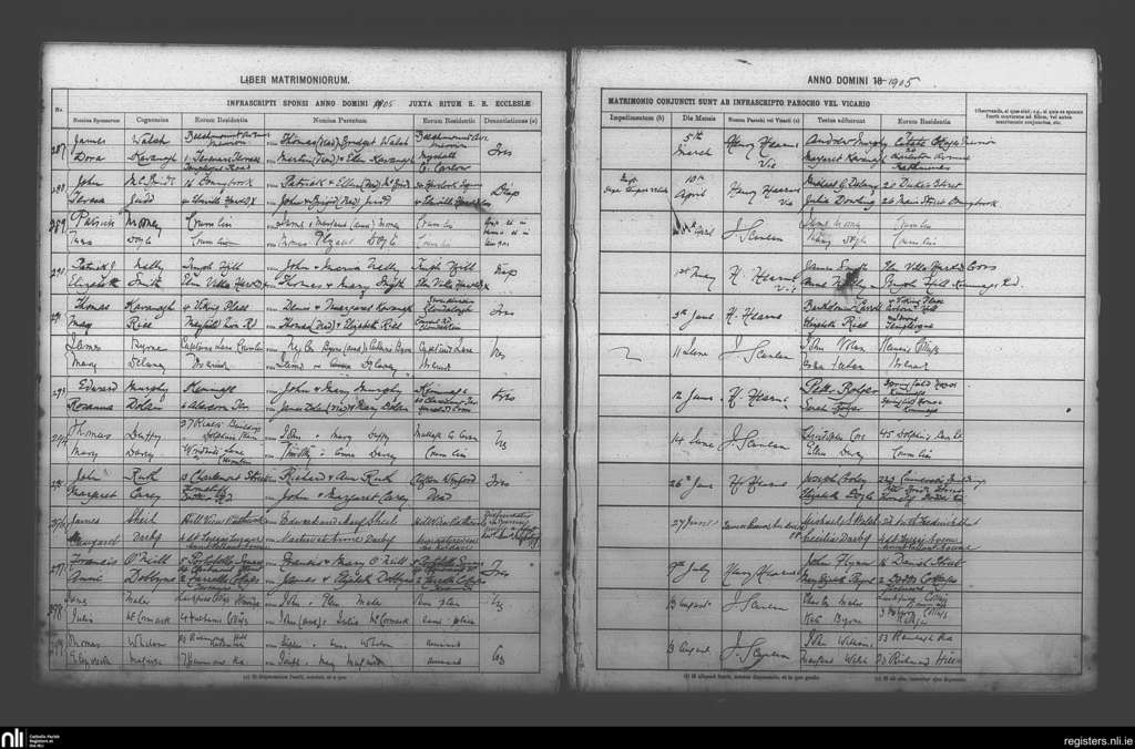 Terenure; County of Dublin; Archdiocese of Dublin. Marriages, Mar. 1905 to Aug. 1905
