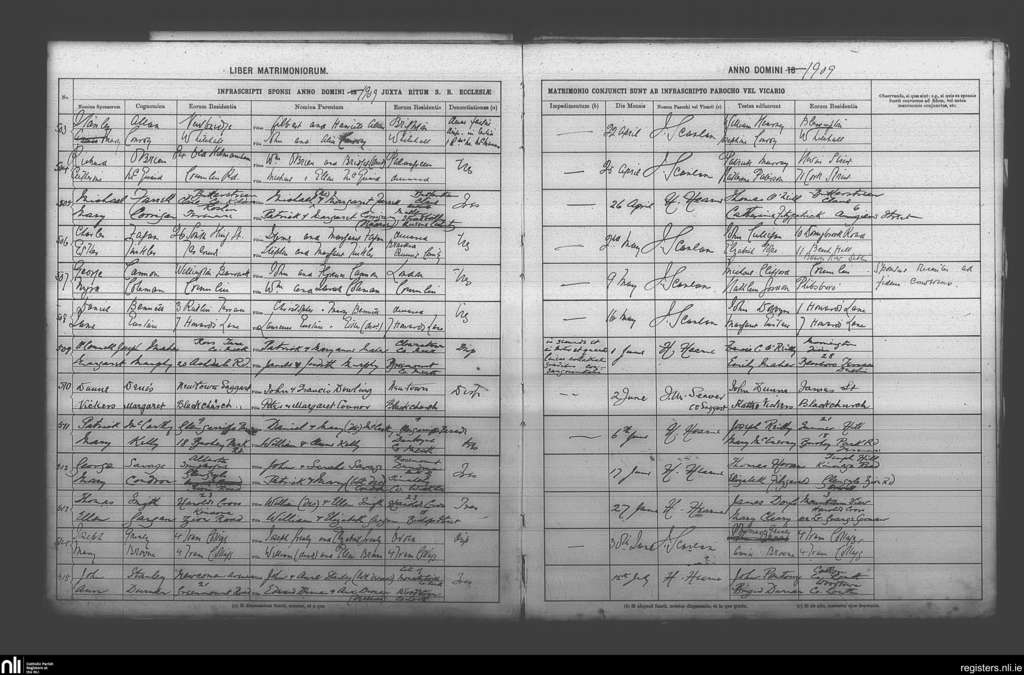 Terenure; County of Dublin; Archdiocese of Dublin. Marriages, Apr. 1909 to July 1909