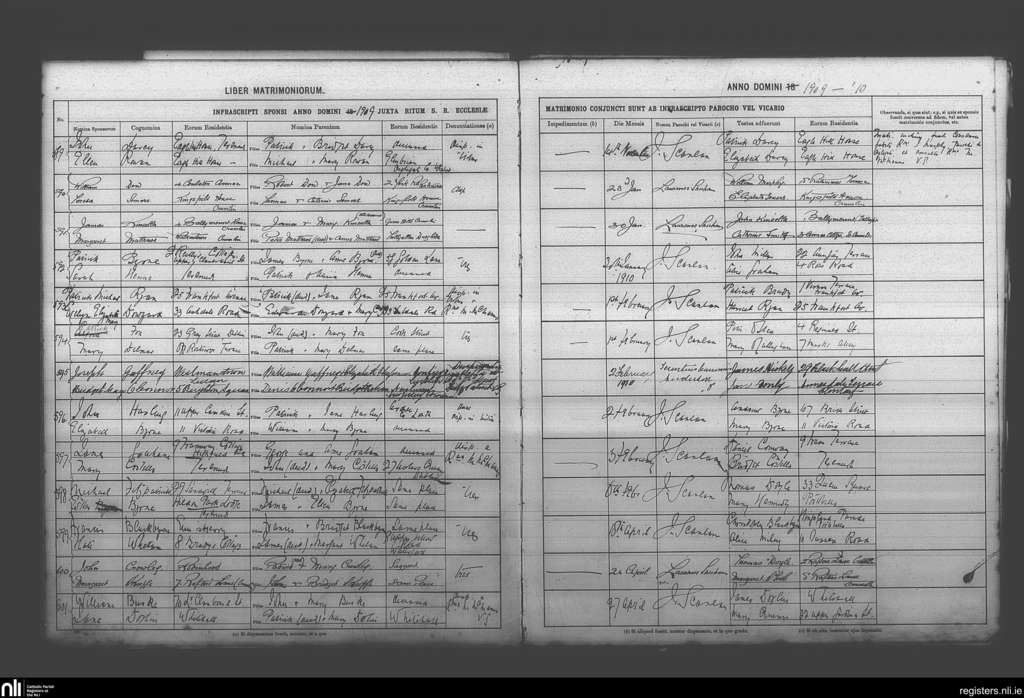 Terenure; County of Dublin; Archdiocese of Dublin. Marriages, Nov. 1909 to Apr. 1910