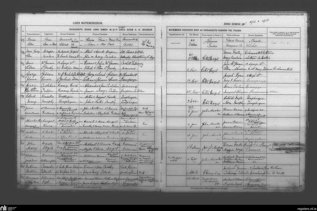 Terenure; County of Dublin; Archdiocese of Dublin. Marriages, Oct. 1912 to Apr. 1913