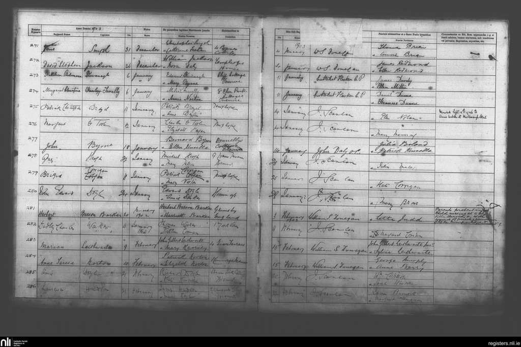 Terenure; County of Dublin; Archdiocese of Dublin. Baptisms, Jan. 1903 to Feb. 1903