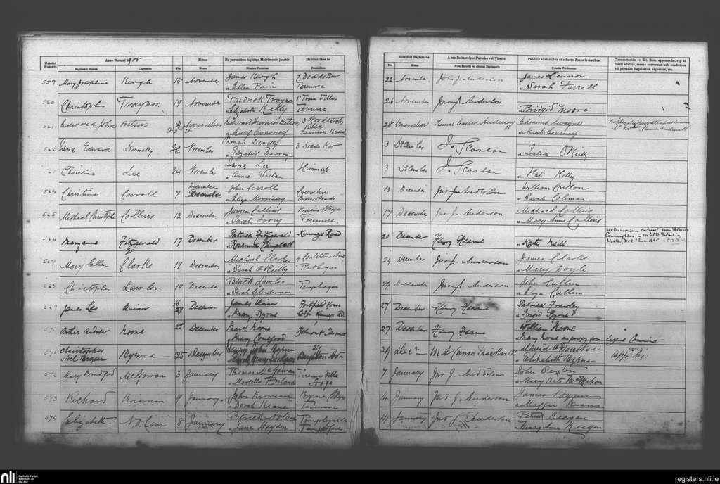 Terenure; County of Dublin; Archdiocese of Dublin. Baptisms, Nov. 1905 to Jan. 1906