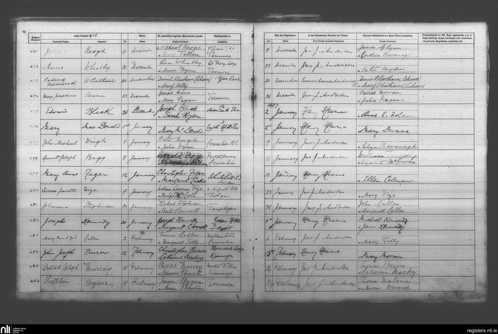 Terenure; County of Dublin; Archdiocese of Dublin. Baptisms, Dec. 1906 to Feb. 1907