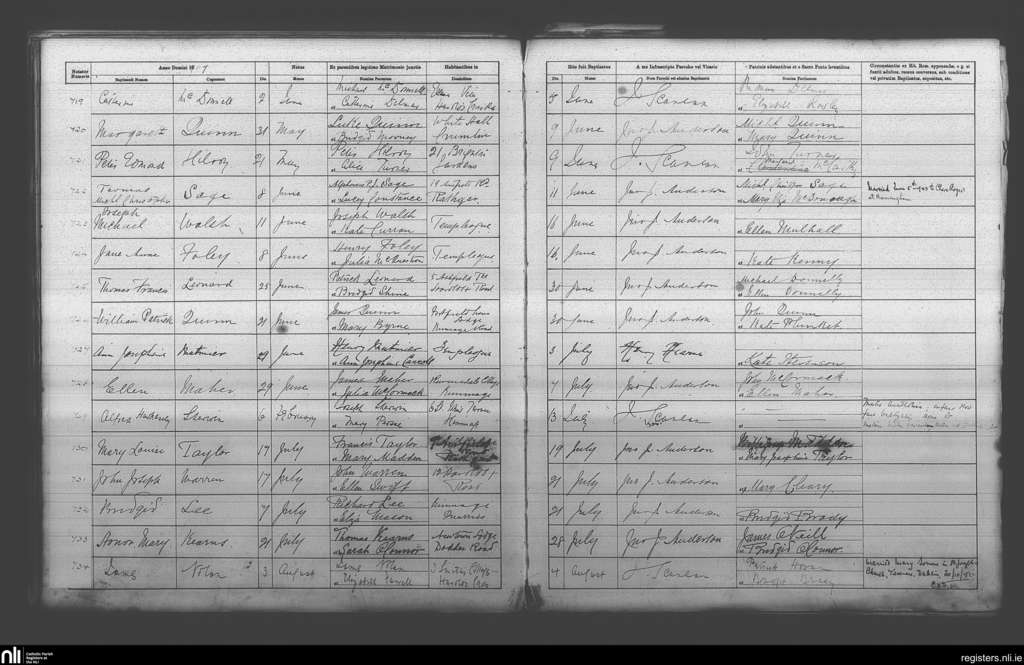 Terenure; County of Dublin; Archdiocese of Dublin. Baptisms, June 1907 to Aug. 1907