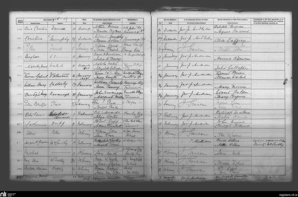 Terenure; County of Dublin; Archdiocese of Dublin. Baptisms, Dec. 1908 to Mar. 1909