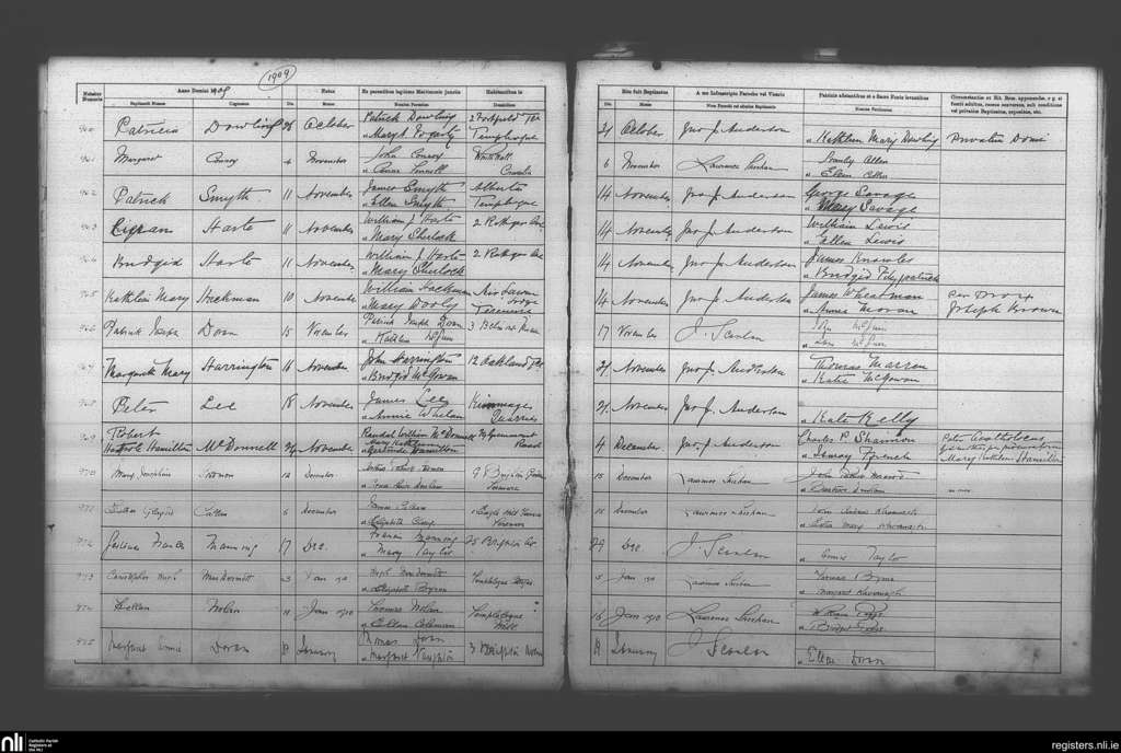 Terenure; County of Dublin; Archdiocese of Dublin. Baptisms, Oct. 1909 to Jan. 1910
