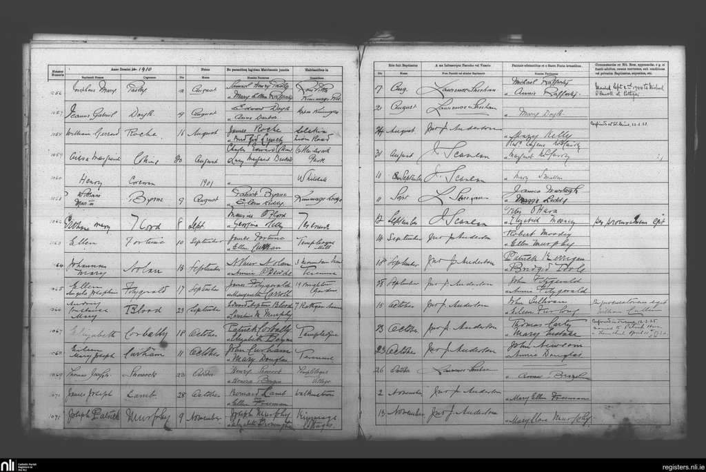 Terenure; County of Dublin; Archdiocese of Dublin. Baptisms, Aug. 1910 to Nov. 1910