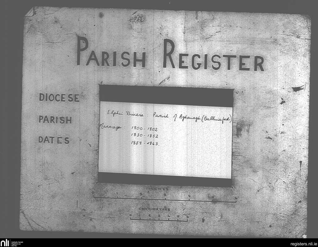 Aughanagh; County of Sligo; Diocese of Elphin. Marriages