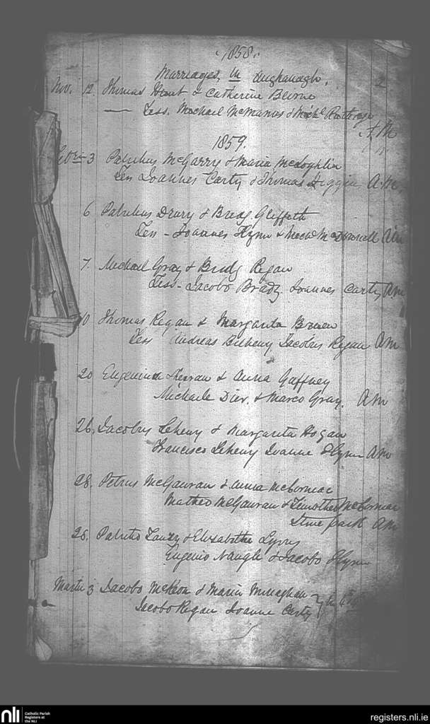 Aughanagh; County of Sligo; Diocese of Elphin. Marriages, Nov. 1858 to Sep. 1859