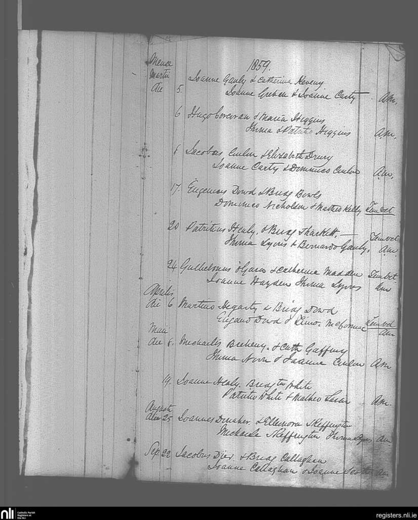 Aughanagh; County of Sligo; Diocese of Elphin. Marriages, Mar. 1859 to Sep. 1859