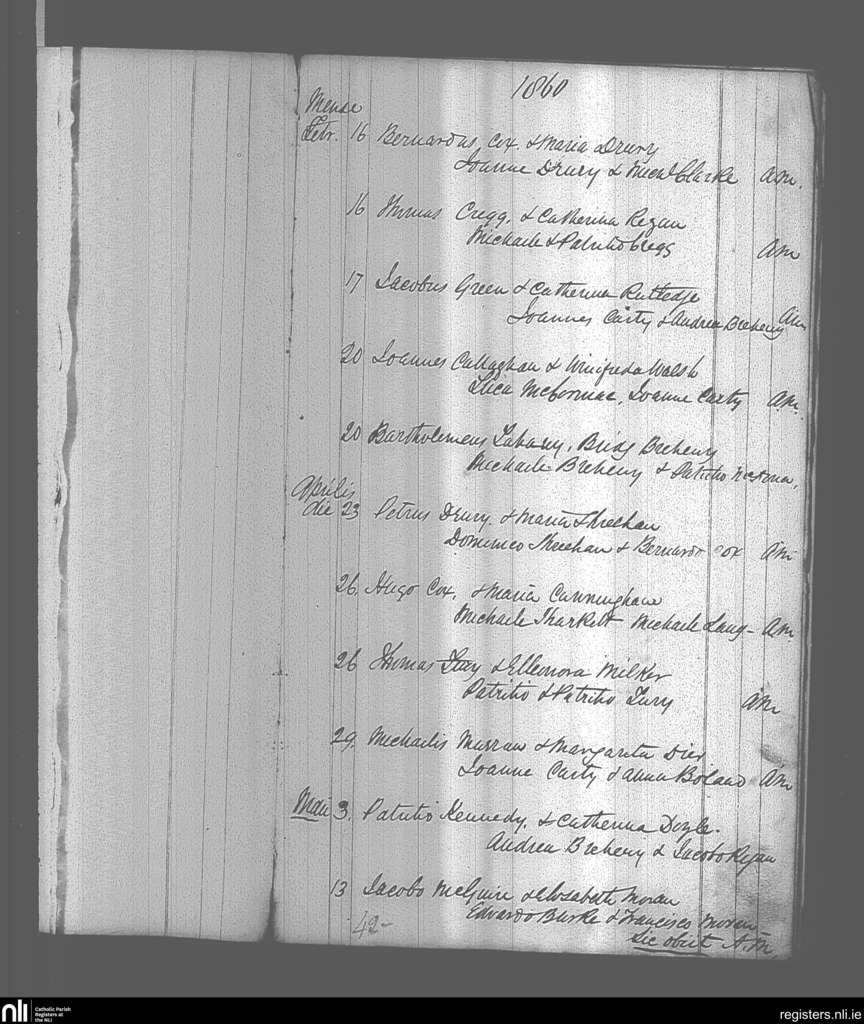 Aughanagh; County of Sligo; Diocese of Elphin. Marriages, Feb. 1860 to May 1860