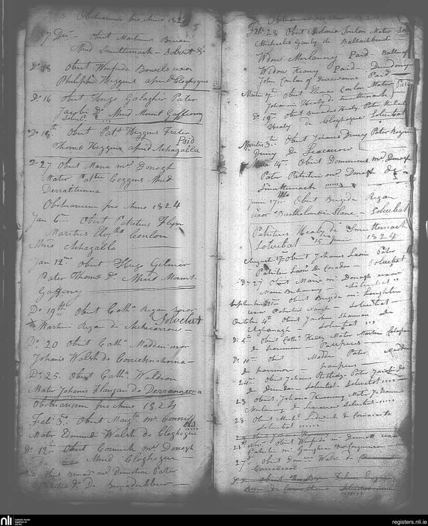 Aughanagh; County of Sligo; Diocese of Elphin. Deaths, Dec. 1823 to Nov. 1824