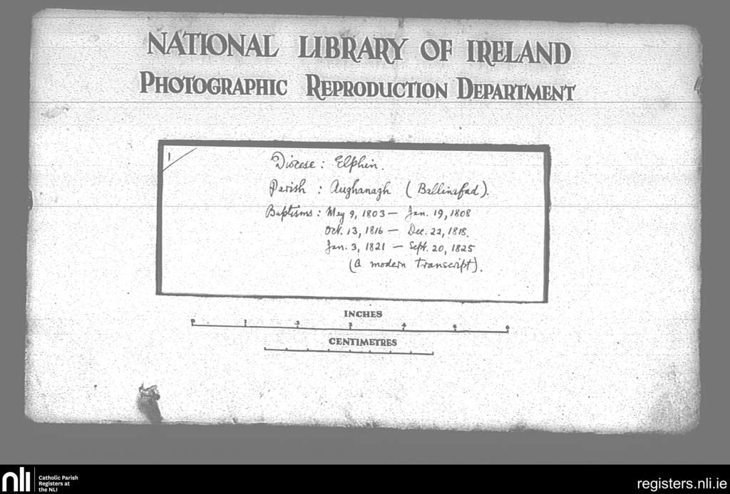 Aughanagh; County of Sligo; Diocese of Elphin. Baptisms