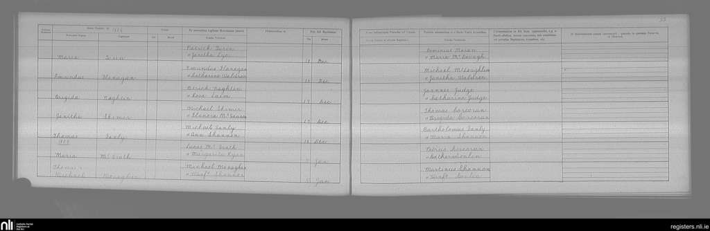 Aughanagh; County of Sligo; Diocese of Elphin. Baptisms, Dec. 1804 to Jan. 1805