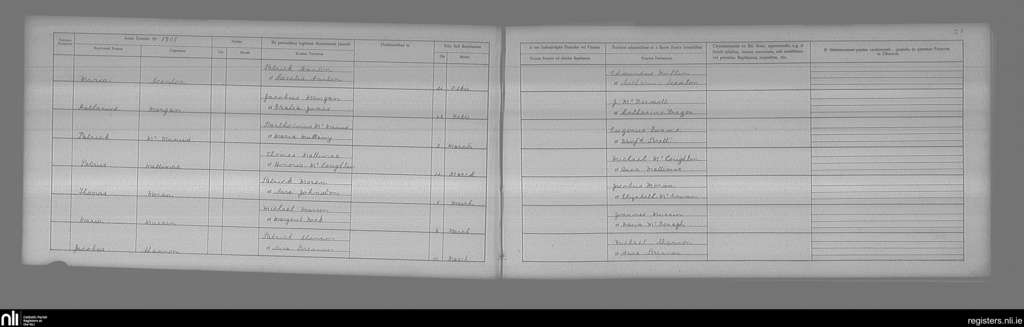 Aughanagh; County of Sligo; Diocese of Elphin. Baptisms, Feb. 1805 to Mar. 1805
