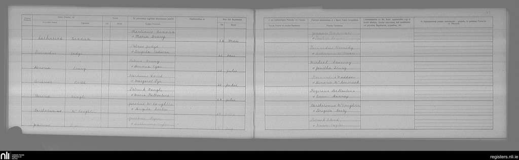 Aughanagh; County of Sligo; Diocese of Elphin. Baptisms, May 1805 to Aug. 1805