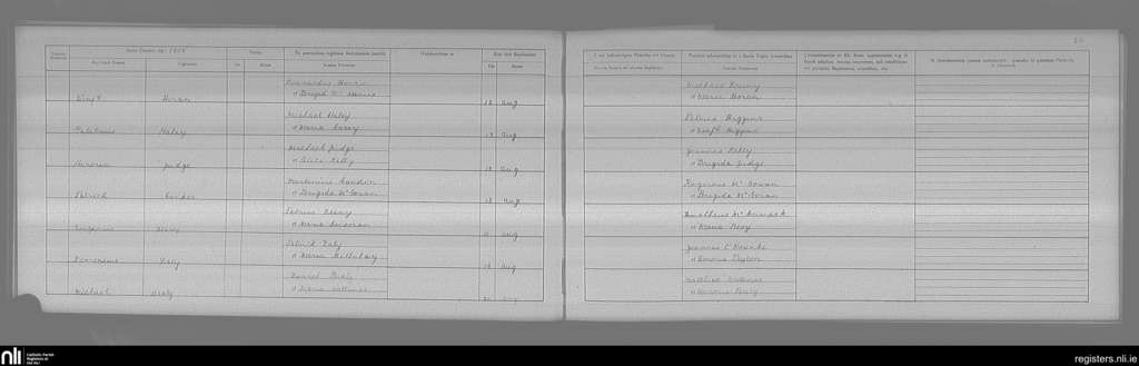 Aughanagh; County of Sligo; Diocese of Elphin. Baptisms, Aug. 1805
