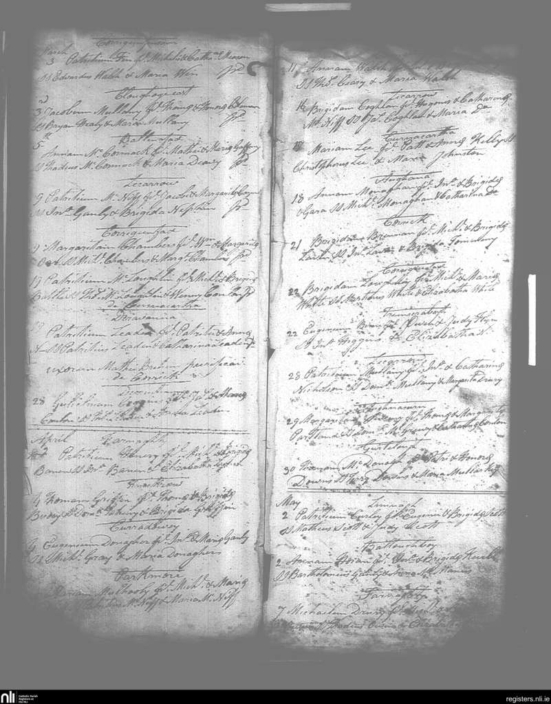 Aughanagh; County of Sligo; Diocese of Elphin. Baptisms, Mar. 1837 to May 1837