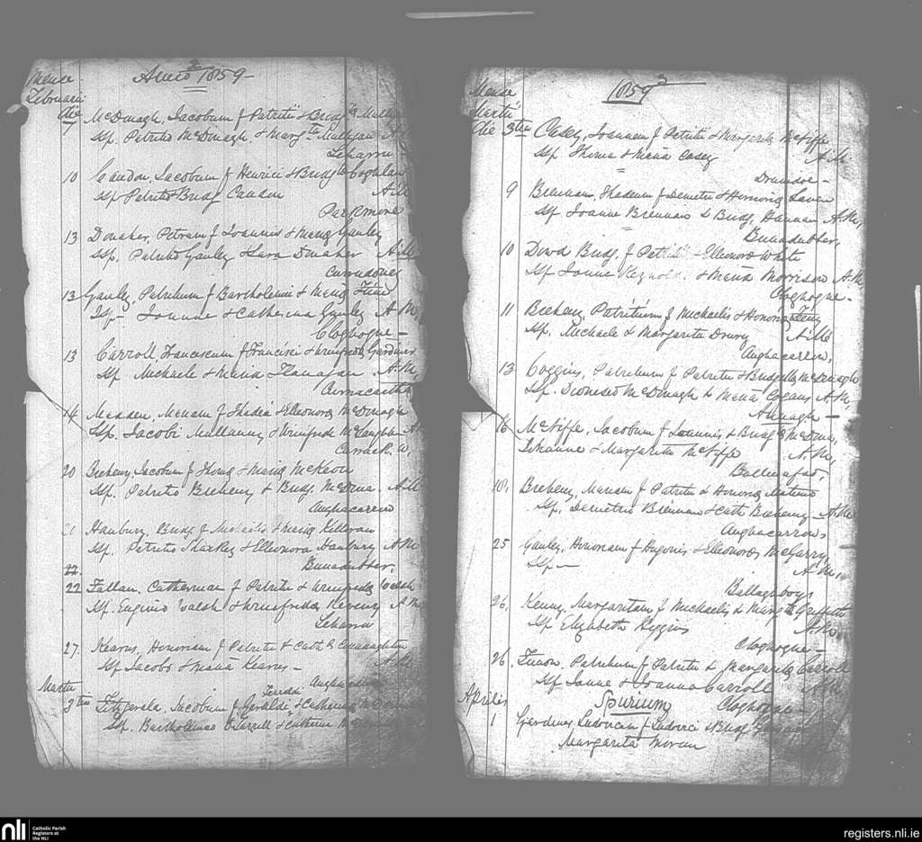 Aughanagh; County of Sligo; Diocese of Elphin. Baptisms, Feb. 1859 to Apr. 1859