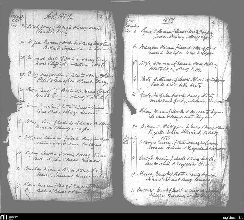 Aughanagh; County of Sligo; Diocese of Elphin. Baptisms, Oct. 1859 to Jan. 1860