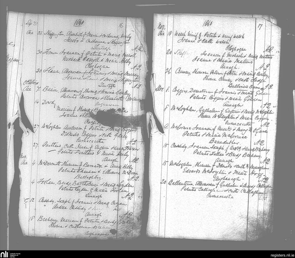 Aughanagh; County of Sligo; Diocese of Elphin. Baptisms, Sep. 1860 to Dec. 1860