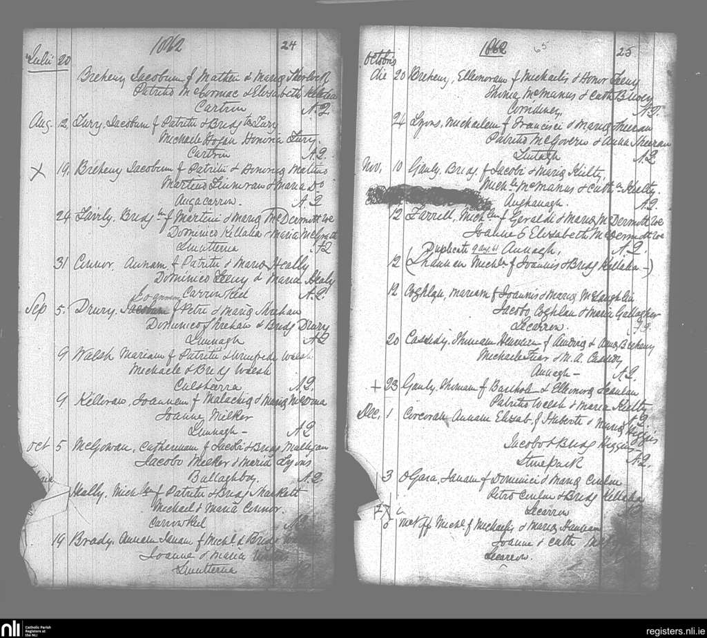Aughanagh; County of Sligo; Diocese of Elphin. Baptisms, July 1862 to Dec. 1862